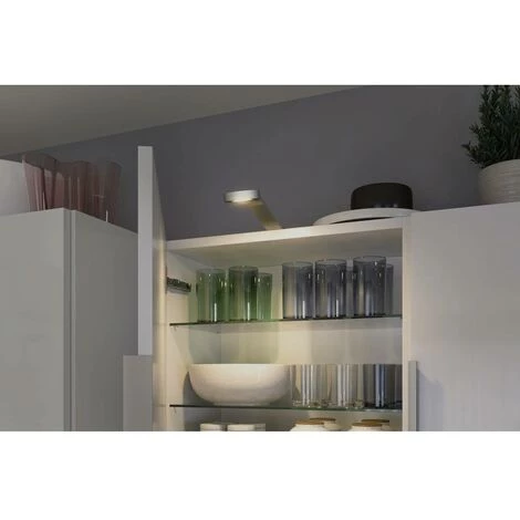 Le spot Mike en chrome mat est monté sur l’armoire et produit de superbes effets lumineux. Clever Connect offre un éclairage individuel pour meubles dans un système. Les luminaires, les pilotes et les accessoires sont librement assemblés et faciles à monter. La fonction TunableWhite combine « travail » et bien-être » comme ambiance lumineuse. Grâce à une longueur de câble illimitée, le système peut être étendu en permanence. Ce texte a été traduit par une machine.
