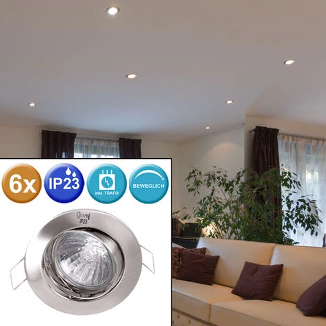 crée de magnifiques accents lumineux. Gr&;ce à la classe de protection IP23, le projecteur est contre Protégé contre les projections d’eau. La livraison comprend 6 spots encastrés ! Détails du luminaire • Type de luminaire : spots encastrés