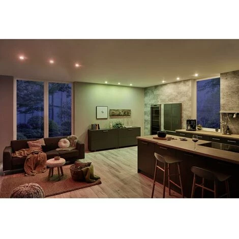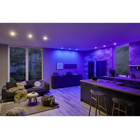Le projecteur encastrable Nova plus coin RGBW avec fonction de changement de couleur crée une ambiance de vie personnalisée. Selon l’humeur, vous pouvez choisir entre blanc lumière du jour, lumière colorée et différents effets. Une diode en blanc (W) garantit en outre une lumière blanche et chaude et évite de mélanger un ton blanc à partir des couleurs rouge, vert et bleu (RGB). Les luminaires sont compatibles ZigBee. ZigBee est un protocole de transmission sans fil qui met en réseau des appareils de différents fabricants. Cela permet une commande centralisée de l’éclairage, dans laquelle peuvent être intégrés, par exemple, des volets roulants, des chauffages et des systèmes d’alarme. Vous avez le choix entre l’utilisation via la Smart Friends Box, une passerelle de même norme d’autres fabricants ou un émetteur manuel Smart Home ZigBee. Les différents composants peuvent être ciblés ou commutés en groupes comme scènes lumineuses. Ce texte a été traduit par une machine.