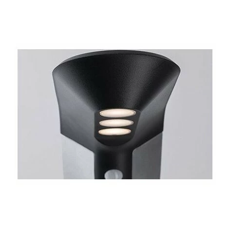Cette borne Soley se charge la journée avec l’énergie solaire. La nuit tombée, la LED commence à briller dès qu’une personne s’approche.