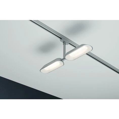 Type de spot LED pour système binaire URail Type d’éclairage directionnel/réglable Variable oui Lumière chaude 2700K Puissance 2x8W Tension 230V Matières plastiques et métalliques Couleur chrome mat, blanc Classe de protection II Flux lumineux 512lm Dimensions 170x375x26mm. ***