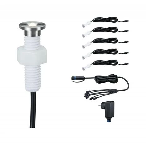 kit 5 spots encastrés plug&shine extérieurs micropenpro 5×0,22 w ip67 3000k acier inoxydable