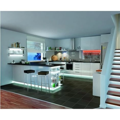 Bandes LEDKit bande LED adhésive SimpLED Kit complet prêt à être installé. Revêtement du ruban qui permet une protection contre la poussière et les projections d’eau. Sources LED basse consommation (classe A – A++). Transforma 2 Ans Garantie