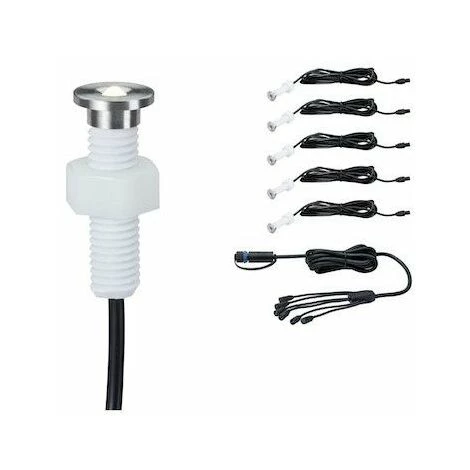Kit de spots encastrés de sol Plug & Shine – Micro Pen – 3000K – 22° – 5×0.22W – Argent de Paulmann – 93694