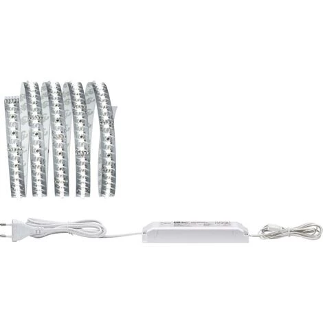 Set MaxLED 1000 prêt à être raccordé avec alimentation et ruban LED non-revêtu de couleur blanc lumière du jour, pour un éclairage utile et d’ambiance décoratif. Montage facile grâce à la face arrière adhésive et au système enfichable. Le ruban peut être raccourci. Extensible avec les rubans MaxLED jusqu’à 3,1 m. D’autres accessoires sont disponibles.